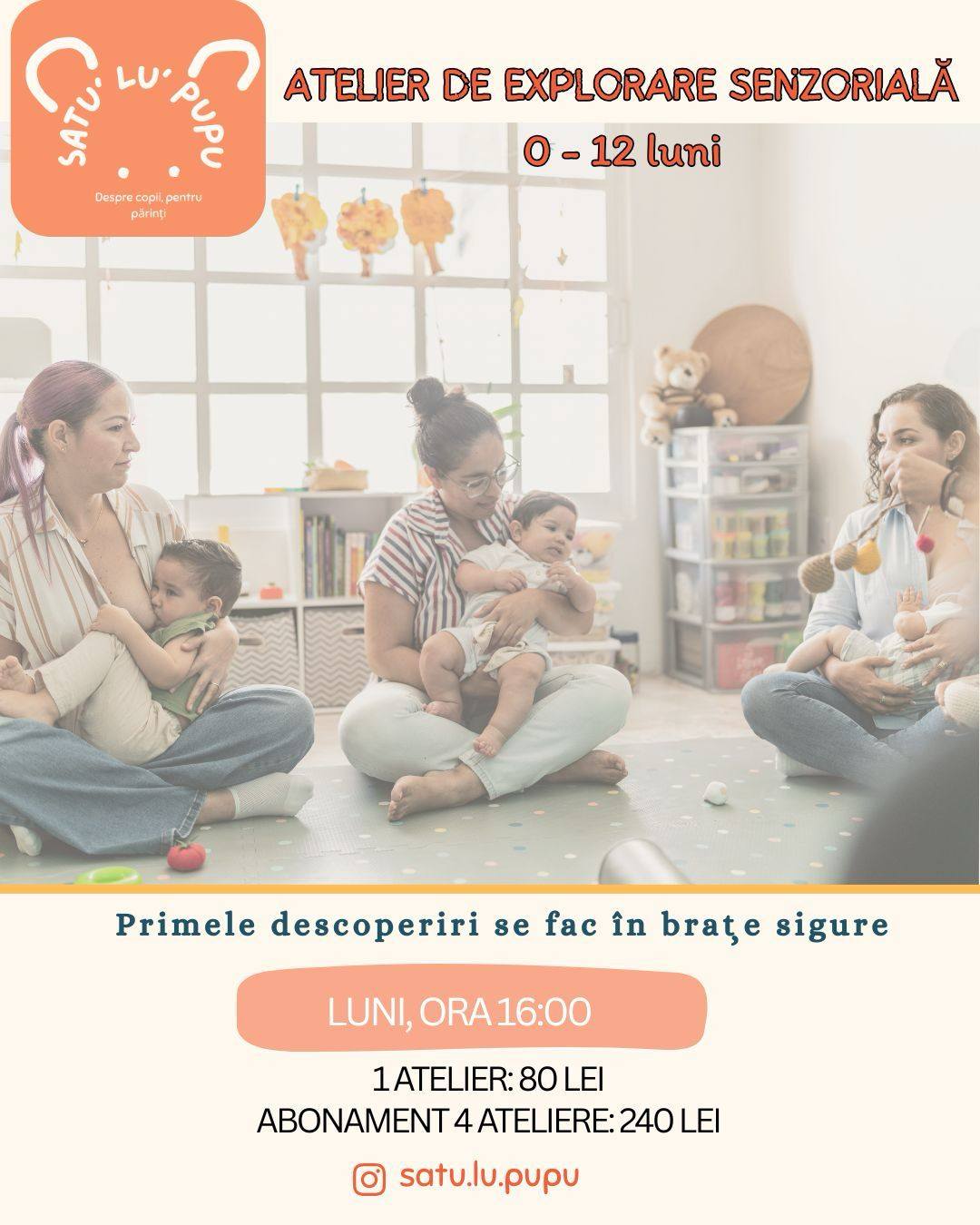 👶 LUNI (16:00 – 17:00): Atelier pentru bebeluși (0-12 luni)