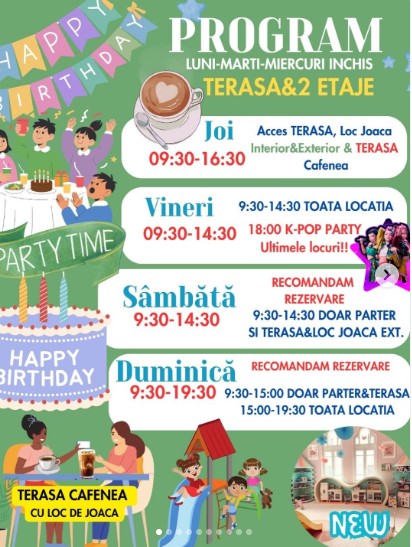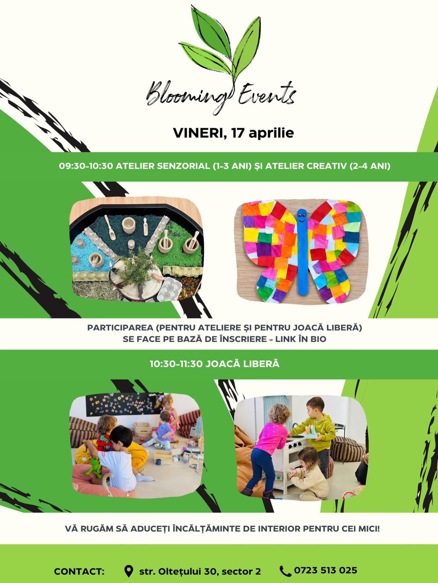 Fiind un atelier în interior, vă rugăm să aduceți pentru cei mici încălțăminte de schimb/ciorapi antiderapanți!