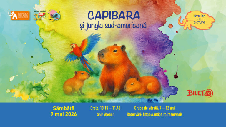 Muzeul Național de Istorie Naturală „Grigore Antipa” îi invită pe copiii pasionați de artă să descopere bucuria picturii în cadrul atelierului „Capibara și jungla sud-americană”. Acest atelier face parte din programul educativ și creativ „Culori sălbatice”.