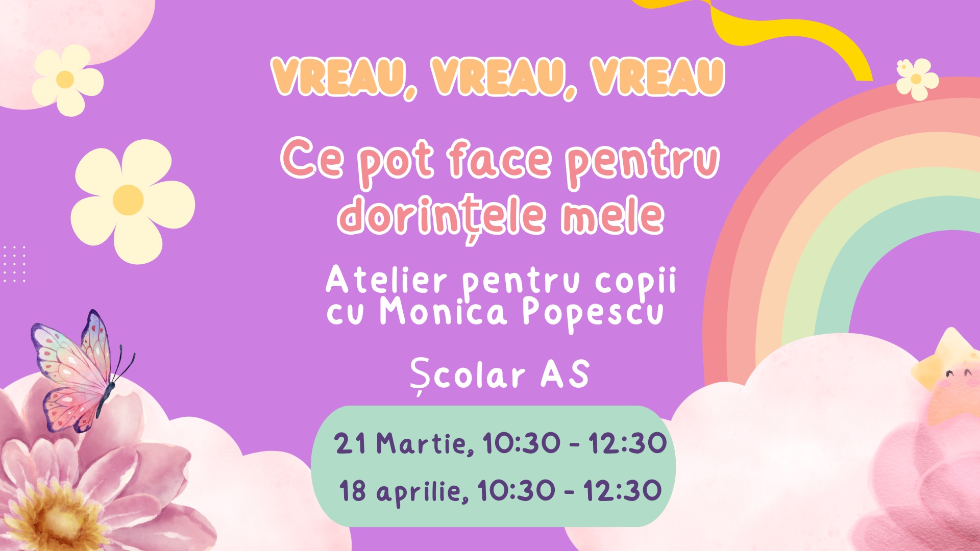 18 aprilie, 10:30 – 12:30 – Atelier dedicat copiilor – VREAU, VREAU, VREAU… Cum fac un plan să îmi împlinesc dorinţele?