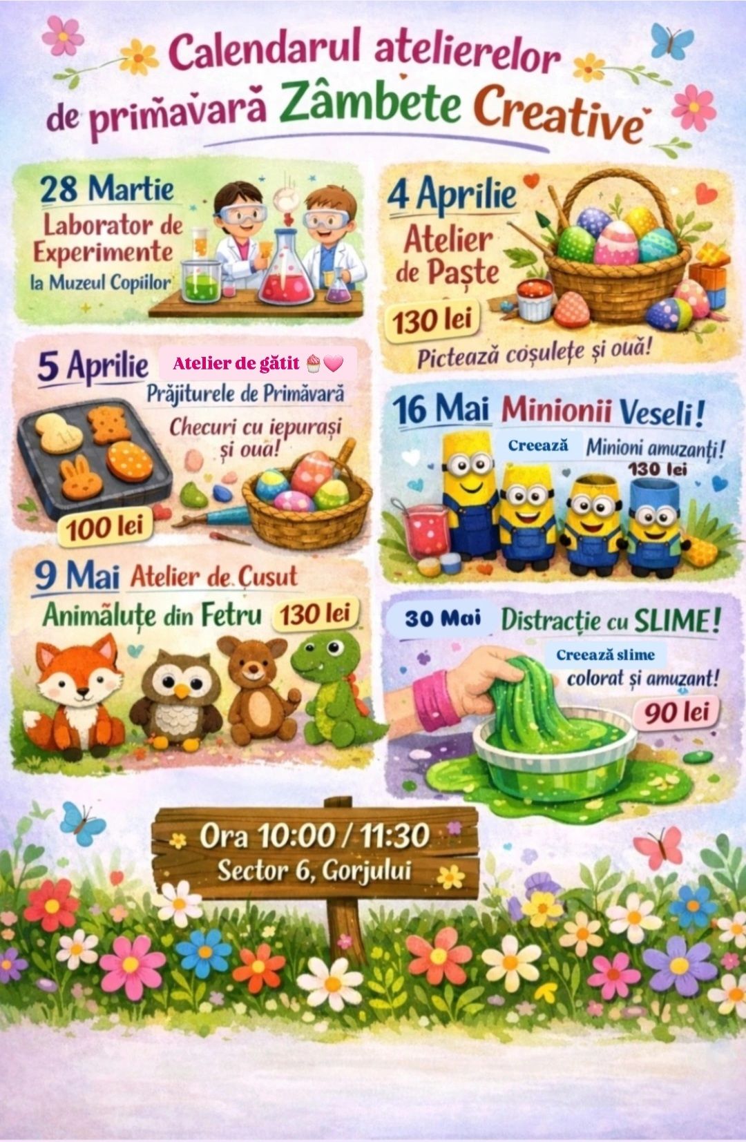 Atelier de cusut: Animăluțe din fetru Data: Sâmbătă, 9 mai Preț: 130 lei / copil Ce vor face copiii: Vor alege modele de animăluțe (iepurași, ursuleți, […]