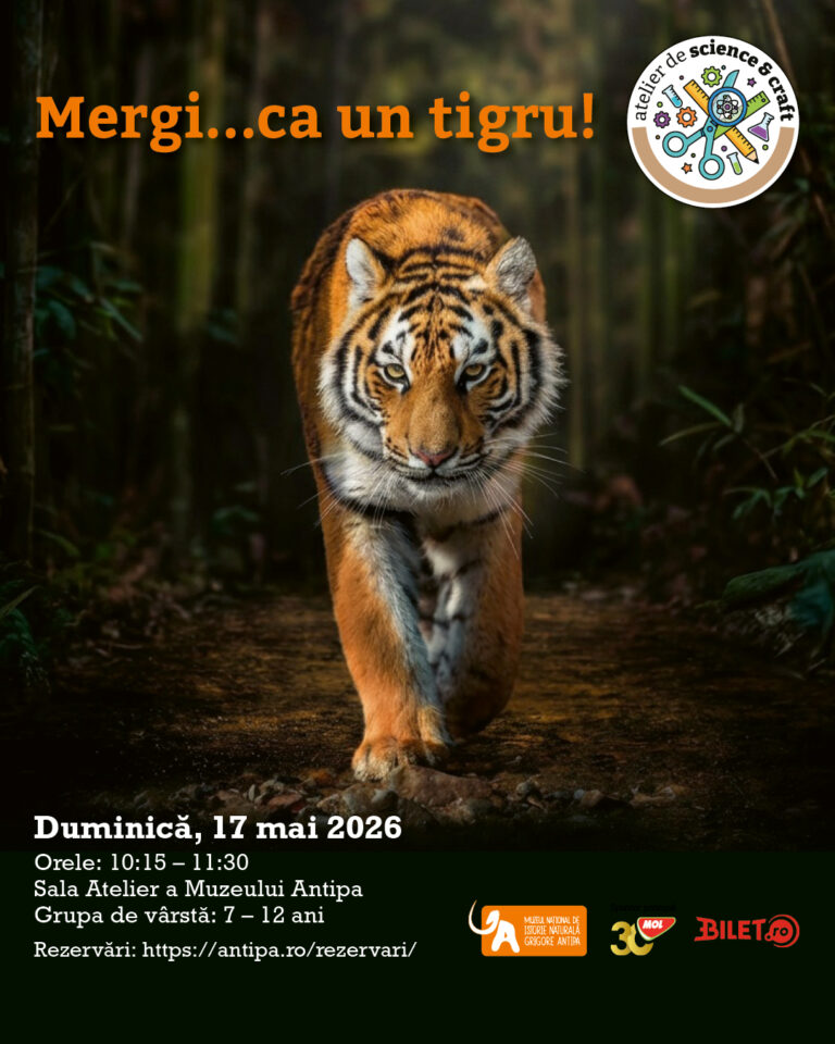 Muzeul Național de Istorie Naturală „Grigore Antipa” îi invită, duminică, 17 mai 2026, pe copiii cu vârste între 7 și 12 ani la un atelier de science & craft despre o felină puternică […]