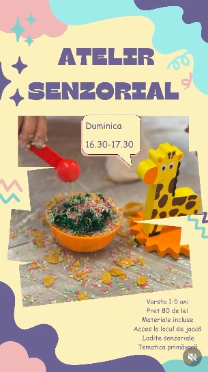 Atelierele Bibiki Strada Valea Oltului 73, București 061903, București, Sector 6Atelier senzorial de primăvară 🌸 Te așteptăm la o experiență plină de culoare, texturi și joacă pentru cei mici! 🐣🦋🌿 Copiii vor explora, vor descoperi și […]